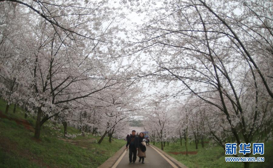 春季里,貴州省貴安新區(qū)紅楓湖畔的櫻花園內櫻花綻放,花海如云似雪,吸引游人踏春賞櫻。
