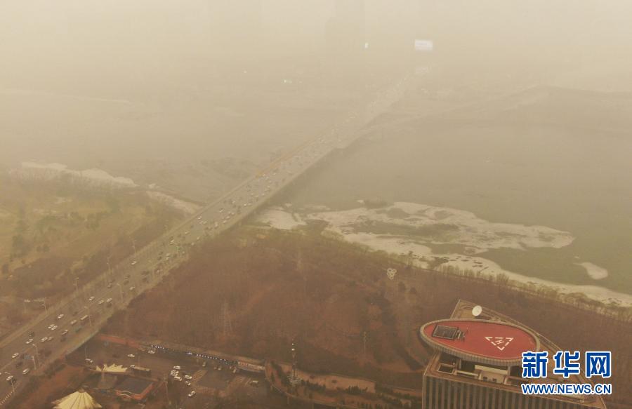 這是3月15日拍攝的遼寧省沈陽市渾河橋(無人機照片)。當日,我國北方多地出現(xiàn)沙塵天氣。新華社記者 楊青 攝