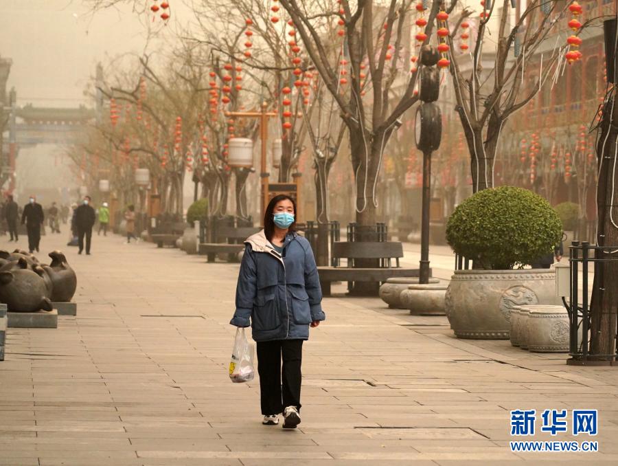 3月15日,行人走在北京前門商業(yè)街。當(dāng)日,我國(guó)北方多地出現(xiàn)沙塵天氣。新華社記者 張晨霖 攝