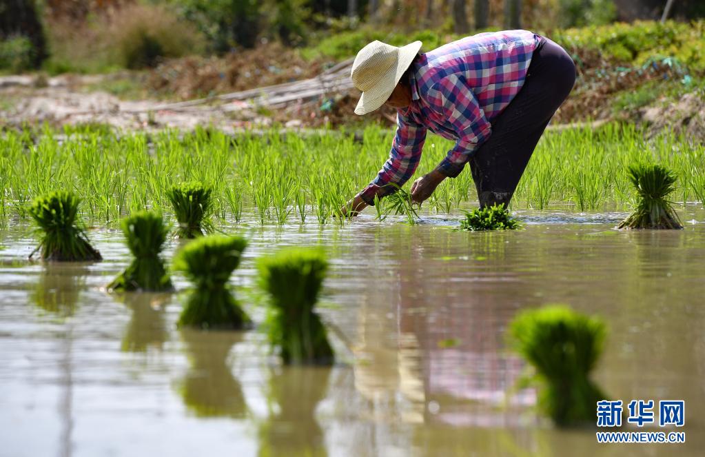 4月5日,海南省陵水黎族自治縣光坡鎮(zhèn)的農(nóng)民在插秧。