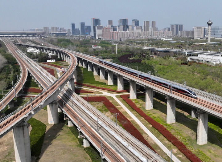 2025年3月31日,一列动车组列车驶出郑州东站。