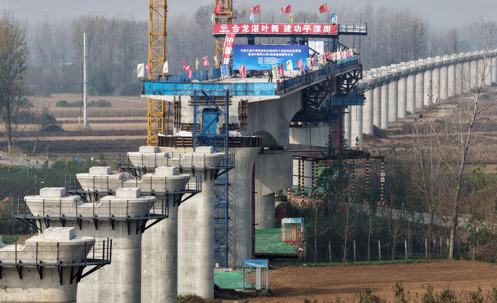 2025年11月13日拍摄的合龙后的平漯周高铁湛叶舞特大桥C段连续梁。