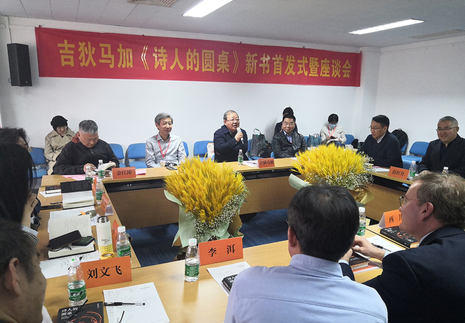 新華網(wǎng)北京4月1日電 由江蘇鳳凰文藝出版社主辦的吉狄馬加《詩人的圓桌》新書首發(fā)式暨座談會于3月31日下午在北京舉行。中國作協(xié)副主席、書記處書記,著名詩人吉狄馬加與著名作家李洱,著名詩人、翻譯家高興、西川、樹才、劉文飛,以及法國駐華使館公使銜文化參贊高明、鳳凰出版?zhèn)髅郊瘓F總經(jīng)理孫真福、鳳凰出版?zhèn)髅焦煞萦邢薰究偨?jīng)理佘江濤等嘉賓出席此次活動,就新書內(nèi)容、詩歌寫作與翻譯及中外詩歌交流等話題展開對話。