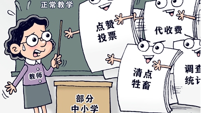 人數(shù)不夠教師來湊。主責(zé)主業(yè)成“副業(yè)”,工作負擔(dān)蹭蹭漲,讓教師苦不堪言。教師的時間都用在“副業(yè)”上了,哪還有時間教書育人?為教師減負,要減掉的正是那些教師不應(yīng)承擔(dān)、與教育教學(xué)無關(guān)的事項,既要“治標”,也要“治本”。