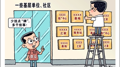 開展達標評比、創(chuàng)建示范活動,本是以標兵引領(lǐng)推動工作落實的有效之舉。但是一些部門卻將發(fā)牌視為“工作下沉”的象征,認為“掛牌即落實”,甚至將掛牌數(shù)量與考核排名掛鉤,大搞“繁瑣哲學(xué)”,動輒開發(fā)出上百項指標,以此下移壓力。部分社會組織甚至以“達標創(chuàng)建”之名創(chuàng)收牟利,造成負面影響。