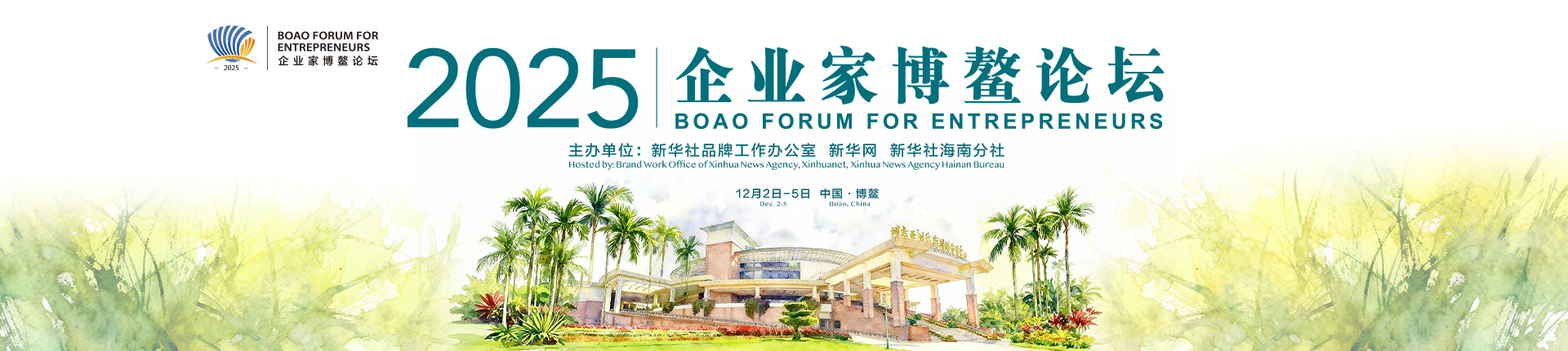 - 12月2日至5日,以“鏈接全球,引領(lǐng)未來(lái):‘十五五’新機(jī)遇”為主題的2025企業(yè)家博鰲論壇在海南省瓊海市博鰲鎮(zhèn)舉行。本屆論壇由新華社品牌工作辦公室、新華網(wǎng)和新華社海南分社主辦。
