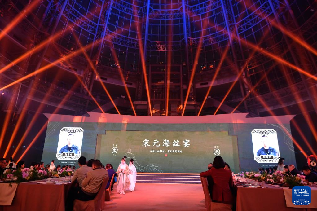 当日,福建泉州石狮市举办“闽菜地标美食城市”授牌暨“宋元海丝宴”推介仪式。“宋元海丝宴”以南宋福建泉州石狮籍美食家林洪著作《山家清供》为还原蓝本,兼收闽南名菜,集山珍、海味于一席,将菜品、宴席与宋元器皿、场景、乐曲、诗词等融合,展现宋元时期世界海洋商贸中心独特的美食文化。