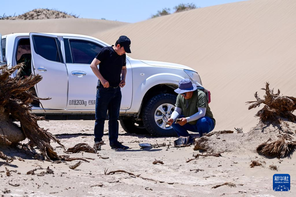 6月2日,额济纳旗文物保护中心工作人员在居延遗址核心区巡护。