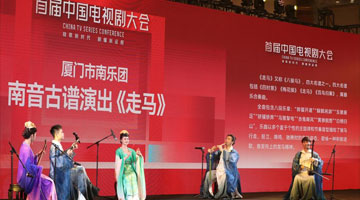 6月6日在南石山村拍摄的唐三彩作品陈列。