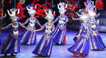 6月10日,贵州省黔东南苗族侗族自治州凯里市下司古镇举办“文化和自然遗产日暨非遗购物节”,当地群众在活动现场展示芦笙舞。