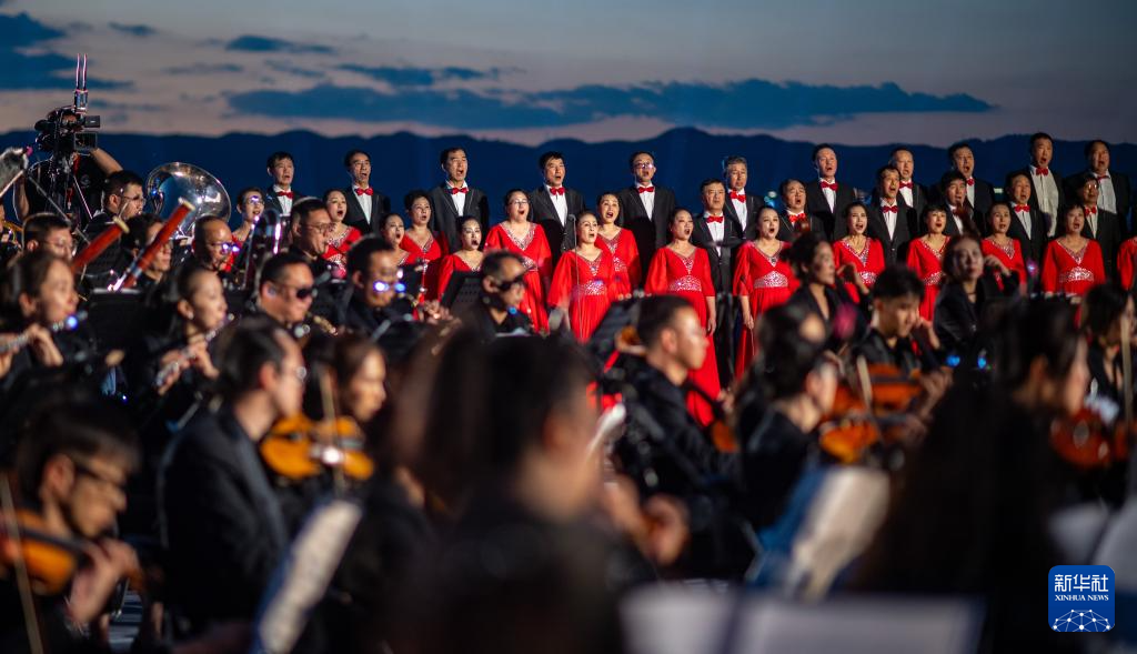 来自昆明聂耳交响乐团及昆明市民族歌舞剧院民乐团的演奏家们在昆明市滇池畔共同演奏包括《义勇军进行曲》《卖报歌》在内的聂耳代表作(7月17日摄)。