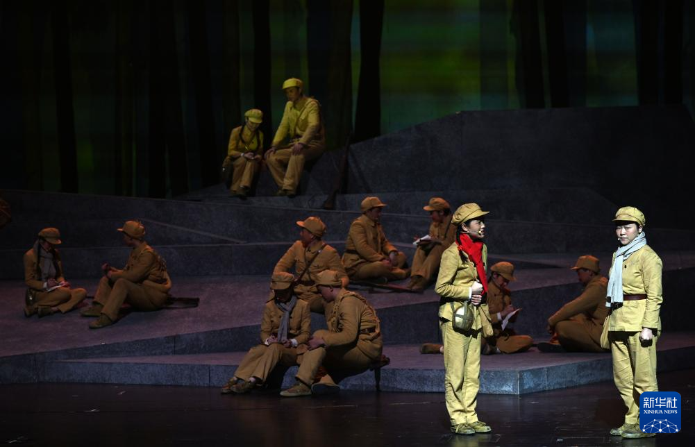 7月19日,演员在话剧《一条大河波浪宽》中表演。
