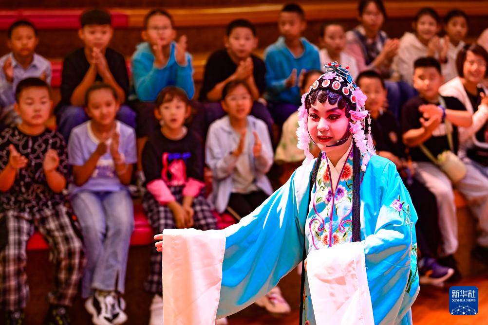 9月9日,康巴什区青少年发展中心京剧团小演员表演京剧《梨花颂》。