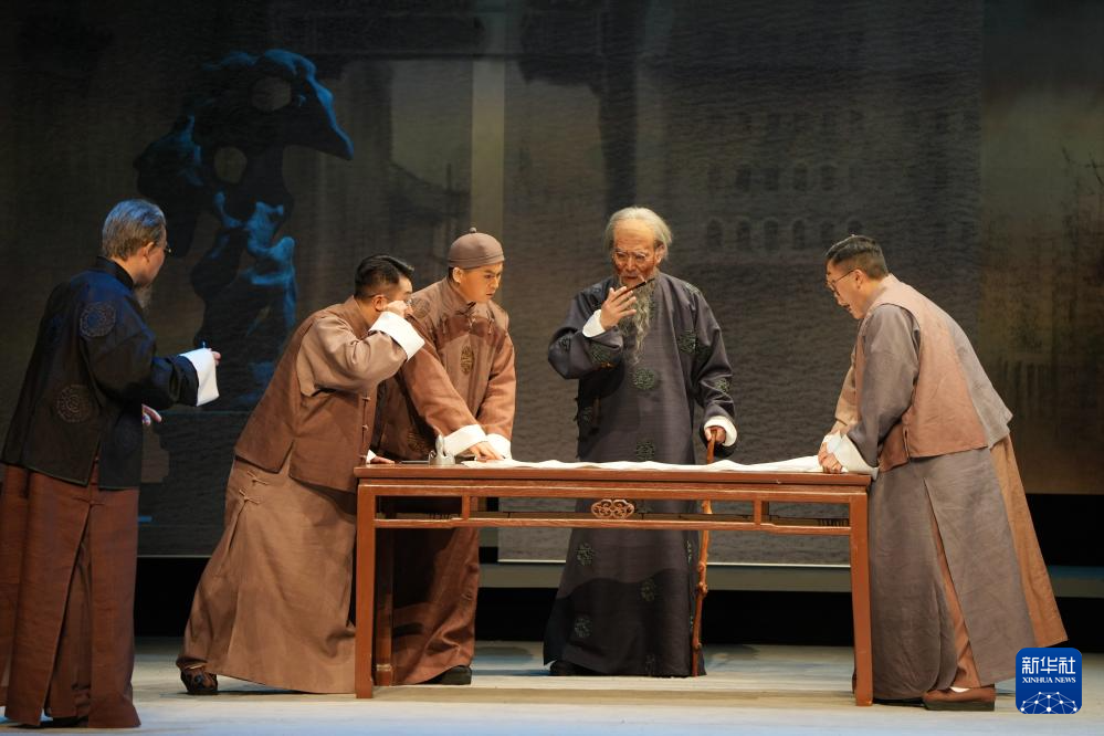演员在北京长安大戏院表演新编京剧《齐白石》(12月16日摄)。