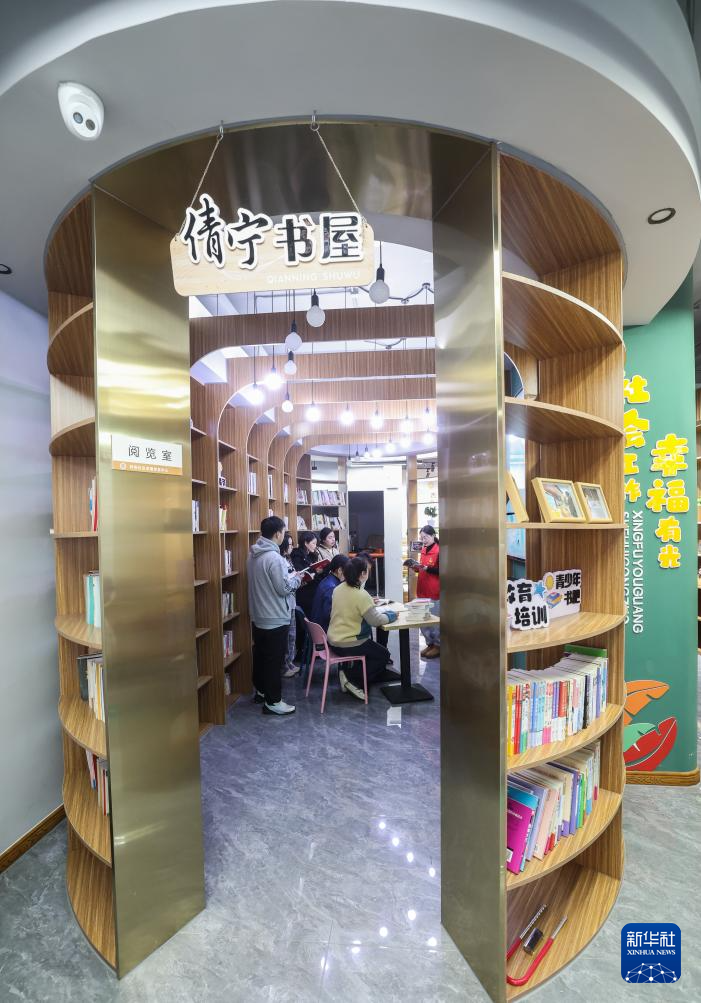 1月4日,在龙泉街道西白鱼潭社区,居民在社区书屋阅读。