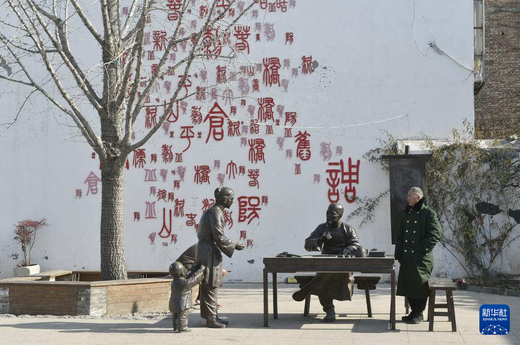 1月6日,游客在浚县古城的土圆粮仓内游览。