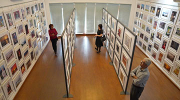 2月18日,人们在比利时布鲁塞尔五十周年纪念公园观赏灯光节展览。