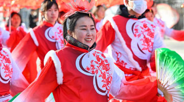 2月18日,人们在比利时布鲁塞尔五十周年纪念公园与灯光节装置互动。