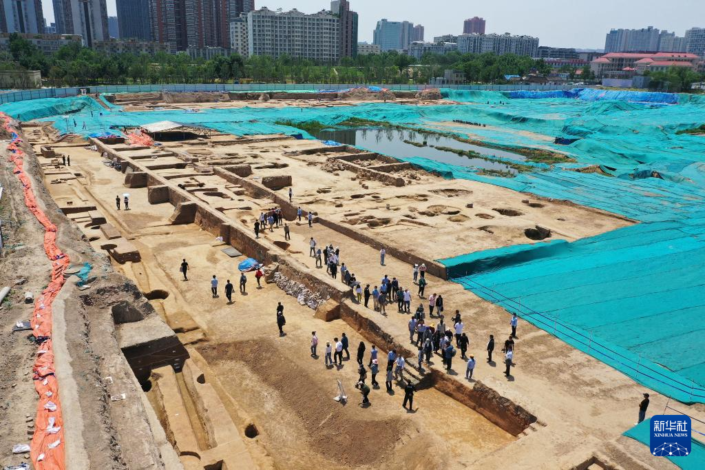 河南郑州商都书院街墓地发掘现场(2023年5月13日摄,无人机照片)。