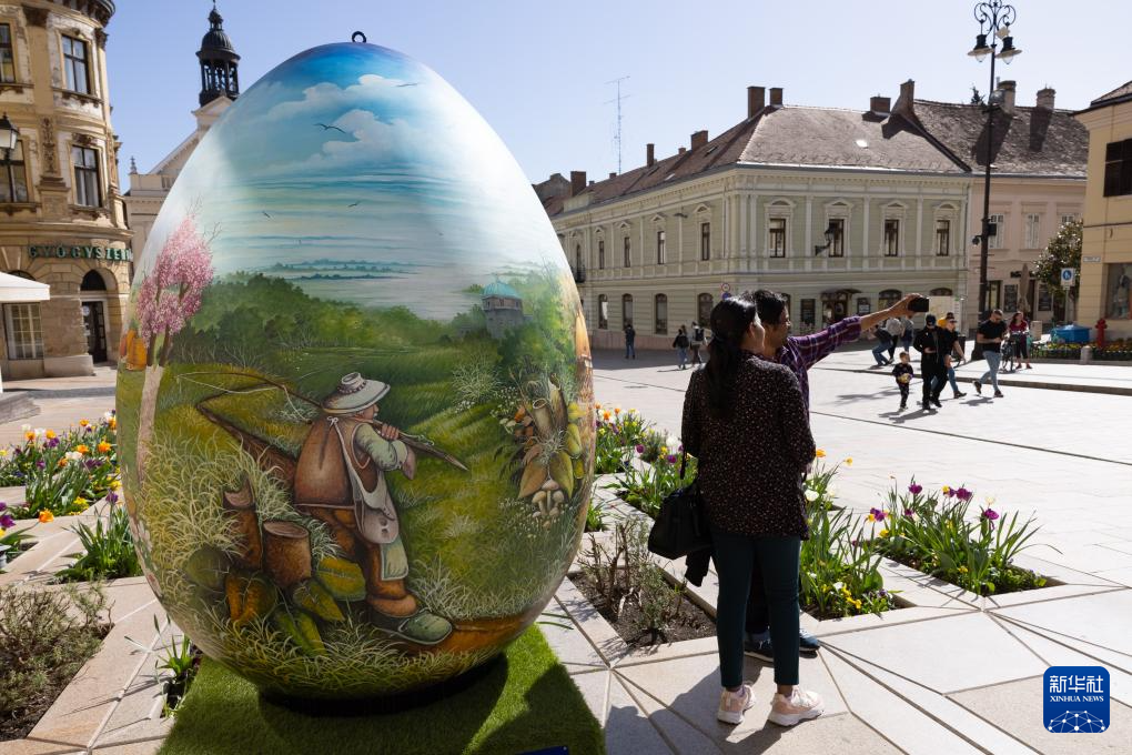 这是3月30日在匈牙利南部城市佩奇街头拍摄的复活节巨型彩蛋。新华社发(弗尔季·奥蒂洛摄)