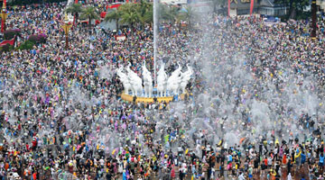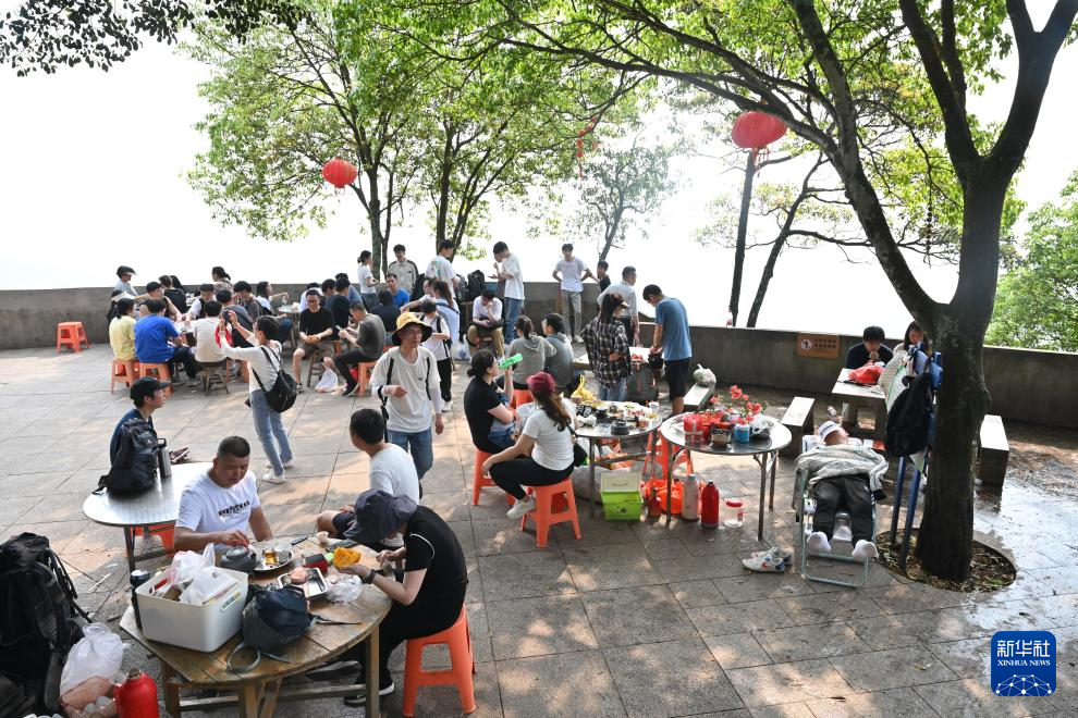 4月14日,在福州鼓山白云洞景点,登山爱好者在此停歇饮茶。