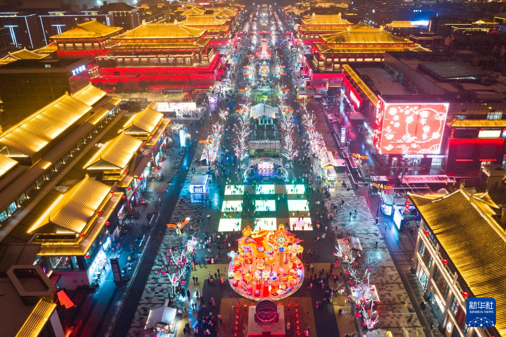 西安大唐不夜城景区景色(2024年2月2日摄,无人机照片)。