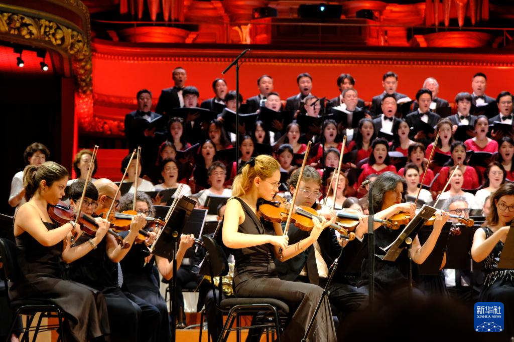 9月9日,在瑞士日内瓦维多利亚音乐厅,乐团演奏《黄河大合唱》。新华社记者 陈斌杰 摄