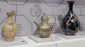 10月29日,观众在太原北齐壁画博物馆选购文创产品。