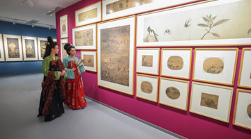 11月24日,人们在萧县“十月古会”书画展览上参观。