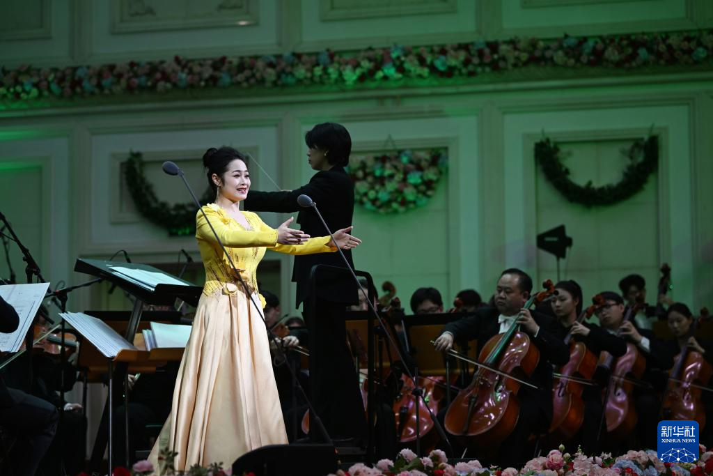 1月2日,女高音演员在音乐会上独唱《春天狂想曲》。
