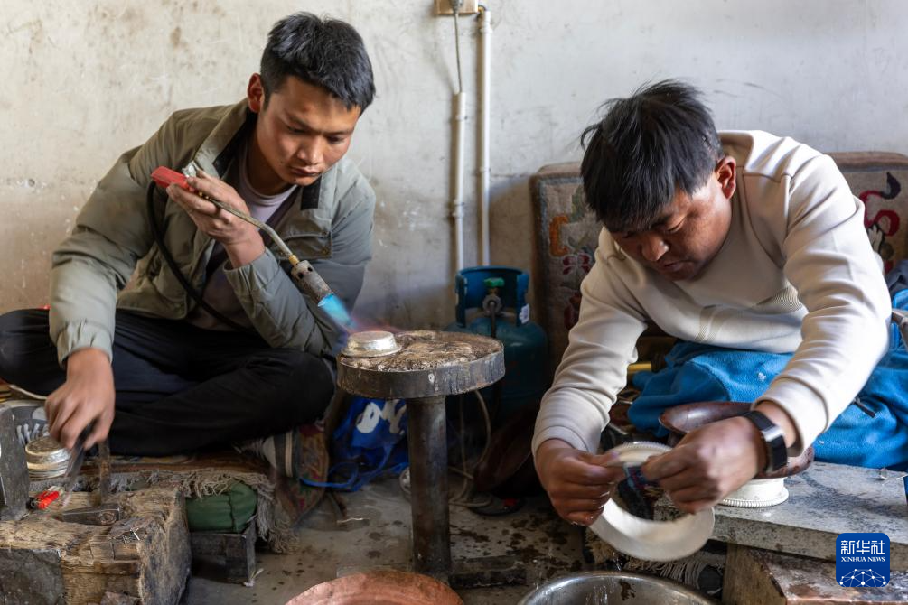 3月6日,扎西吉彩的手工匠人在给银器塑形。
