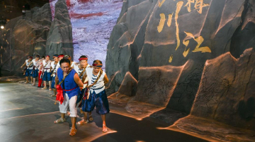 8月21日,在埃及亚历山大附近的海滨,文物工作者和打捞队员与打捞出水的石刻雕像合影。