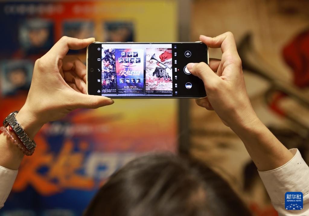 8月31日,在湖北省武汉市江岸区一家影城,观众拍摄近期上映的电影海报。