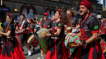 9月1日,参观者在艺术展上展出的摄影作品前驻足观看。