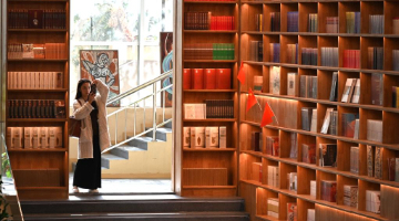 龙禄颖在位于贵州省施秉县的舞水云台非遗工坊和游客交流(10月10日摄)。
