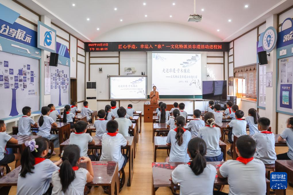10月15日,胡蓉在宁波市怡江小学为学生讲解非遗体验课程。