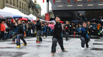 10月27日,在新疆乌鲁木齐市人民公园快闪活动中,市民、游客参与互动。