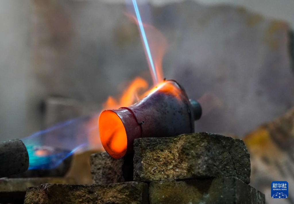 10月25日,匠人在昆明乌铜走银传习馆炼制乌铜。