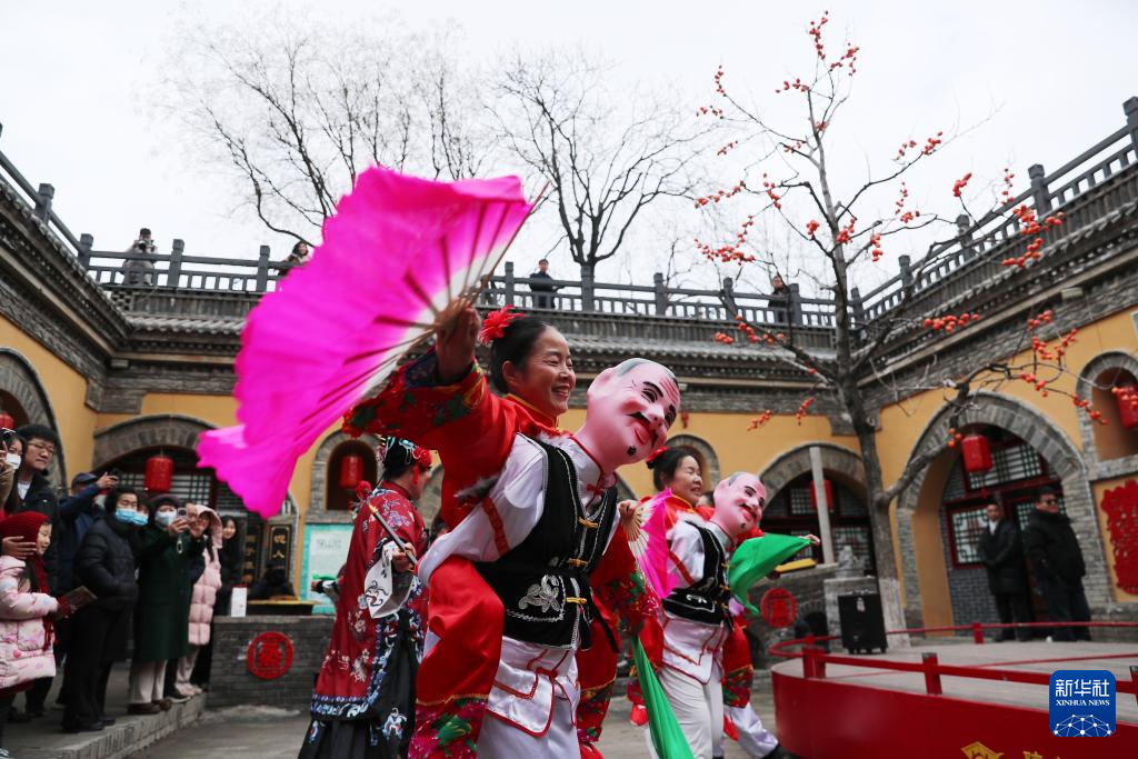 12月21日,演员在河南省三门峡市陕州区张汴乡北营村地坑院民宿表演。