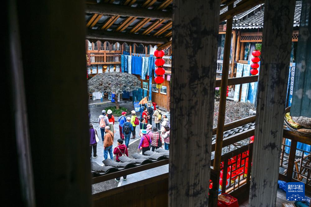 游客在贵州省黎平县肇兴侗寨侗品源传统工艺农民专业合作社参观(12月19日摄)。