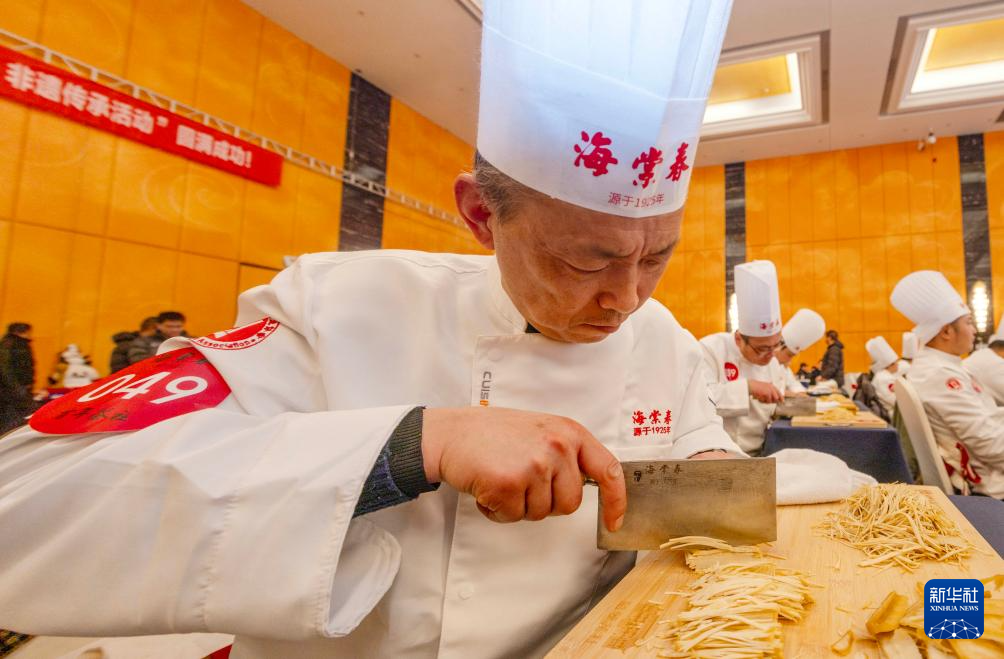 12月23日,泰州早茶“百人炫技千斤丝”非遗传承活动在江苏省泰州市海陵区泰州宾馆举行,百位干丝制作师傅同台献艺,展示泰州早茶中干丝的制作技艺。目前,泰州早茶已形成标准化体系,当地政府将持续深化文商旅融合,助推泰州早茶产业发展。
