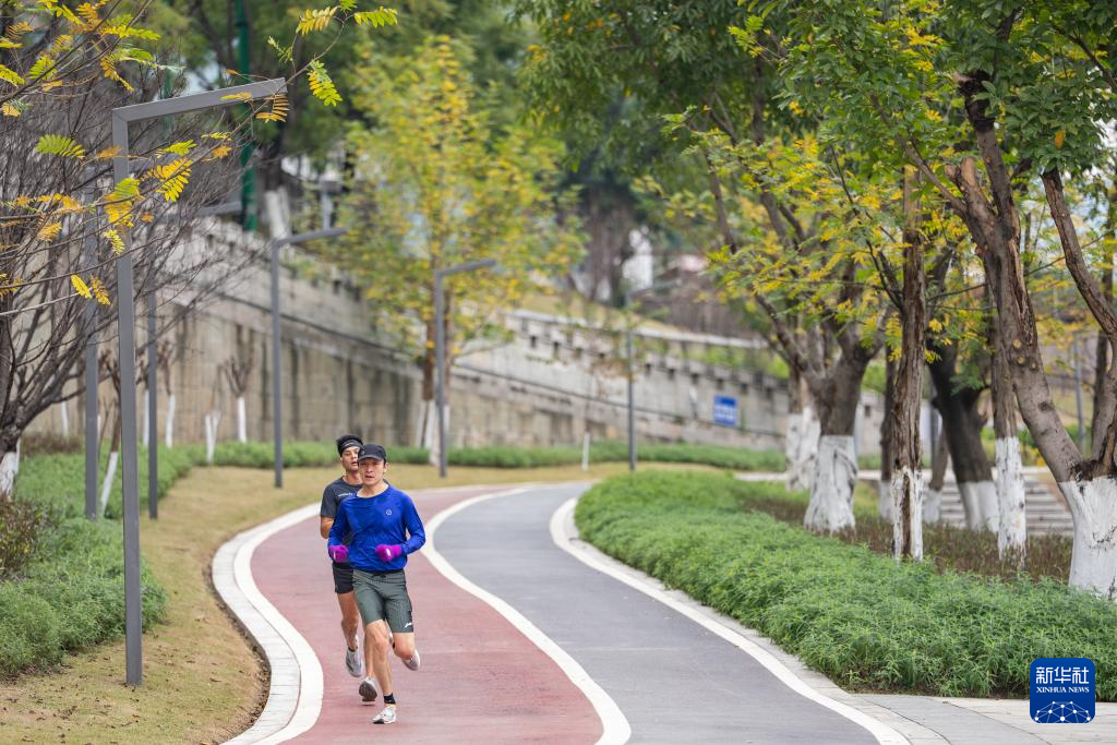 1月6日,市民在重庆市两江新区金海湾滨江公园锻炼。