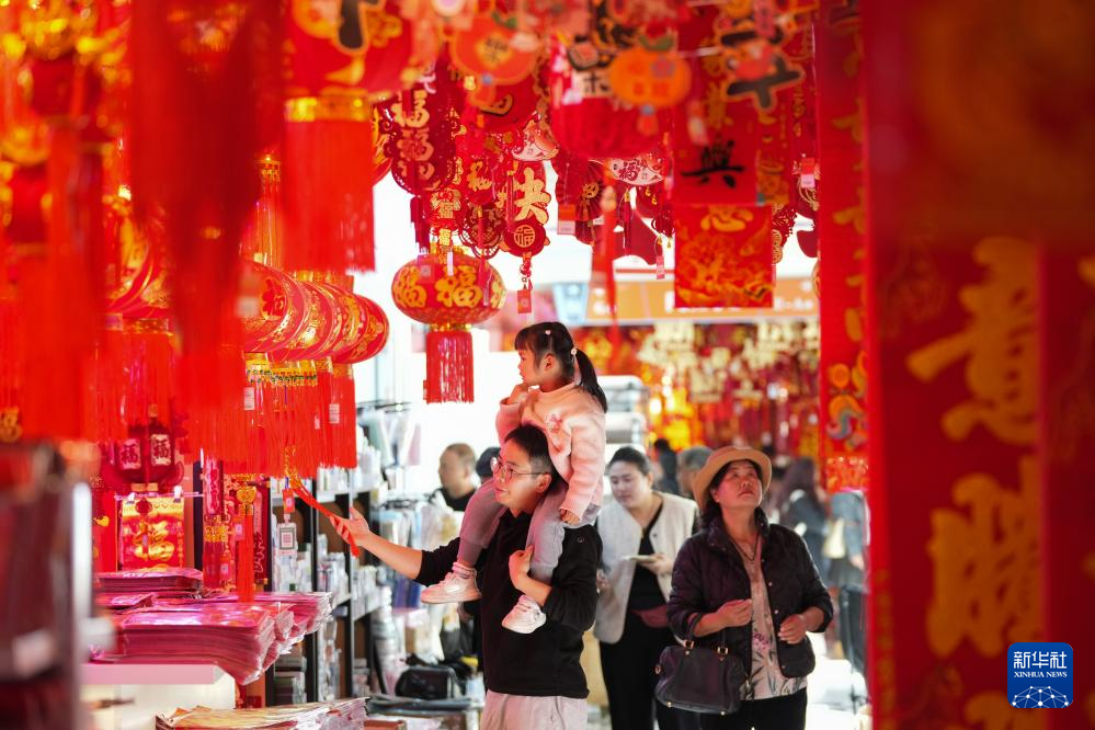2月1日,市民在云南省昆明市俊发·新螺蛳湾国际商贸城选购春节饰品。