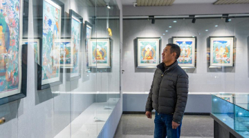 2月12日,市民在河南省济源市一处春节临时市场选购饰品。