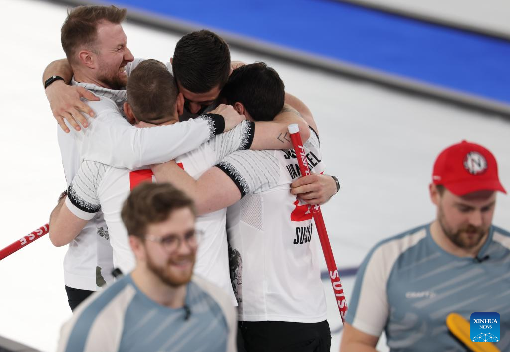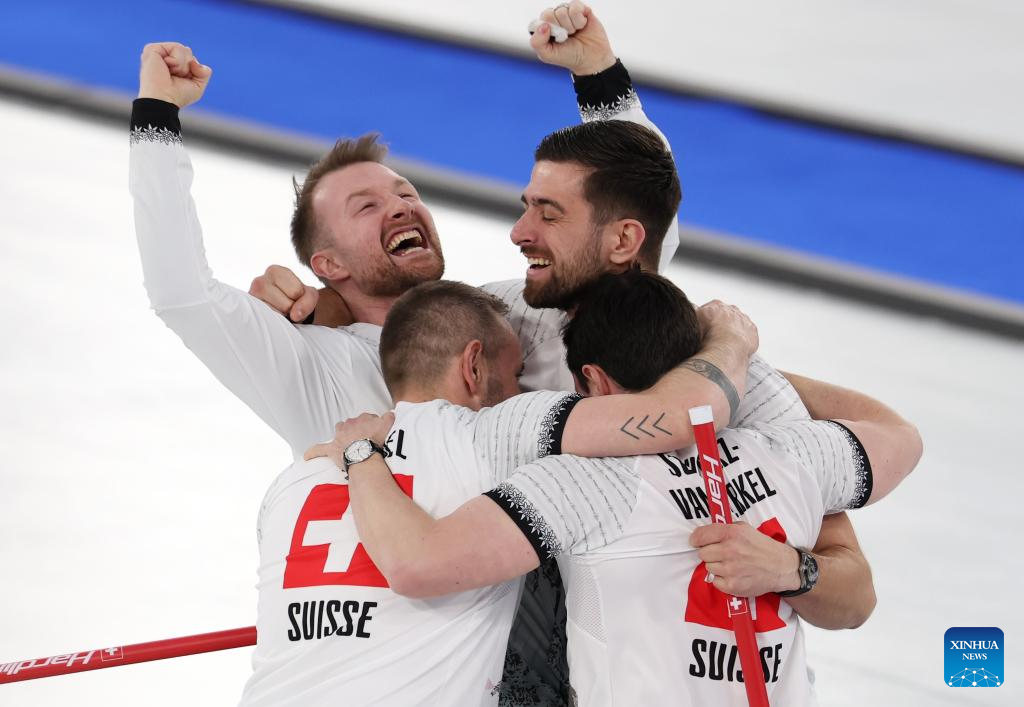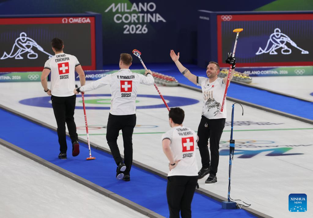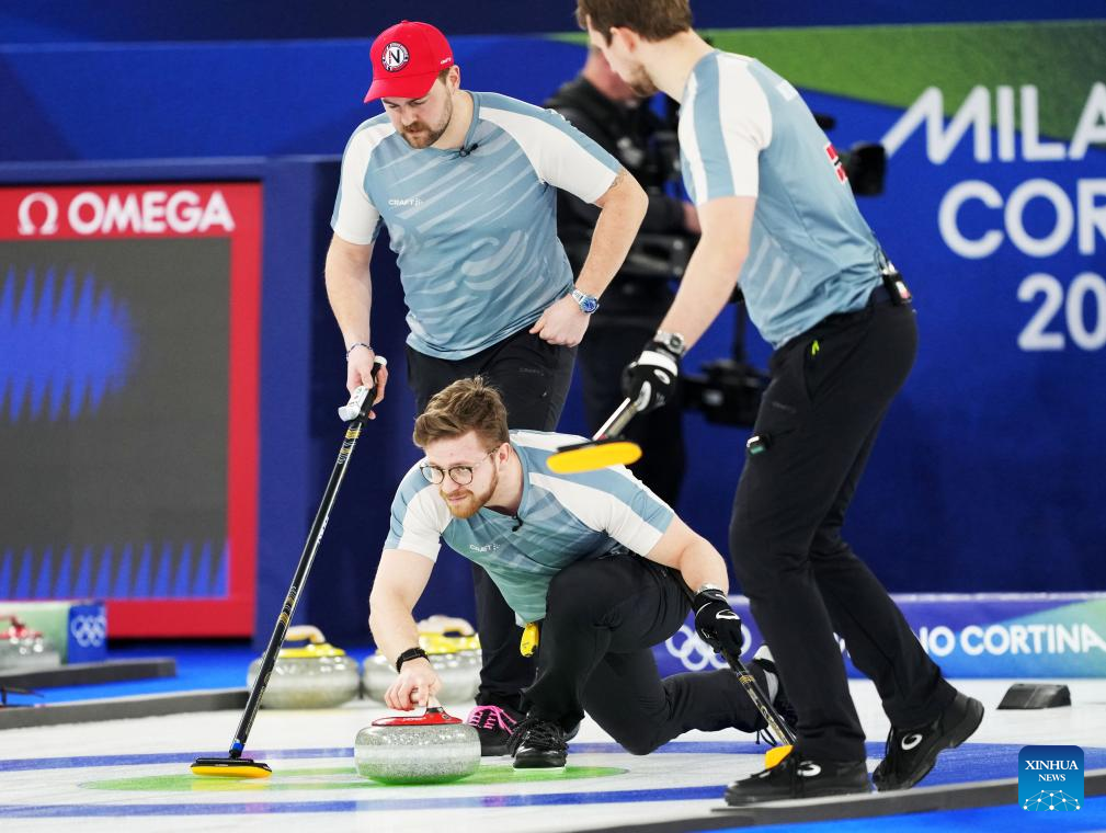 CORTINA D'AMPEZZO, Italy, Feb. 20 (Xinhua) -- Switzerland swept Norway 9-1 to claim the bronze medal in the men's curling competition at the Milan-Cortina Winter Olympics on Friday.