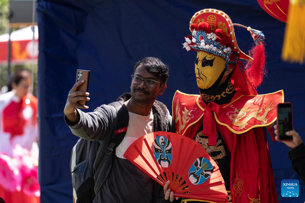 Visitors pose for photos at an event celebrating the Spring Festival in Christchurch, New Zealand, Feb. 21, 2026. A series of events celebrating the Spring Festival is held here from Feb. 20 to 22. (Photo by Chen Siyumeng/Xinhua)