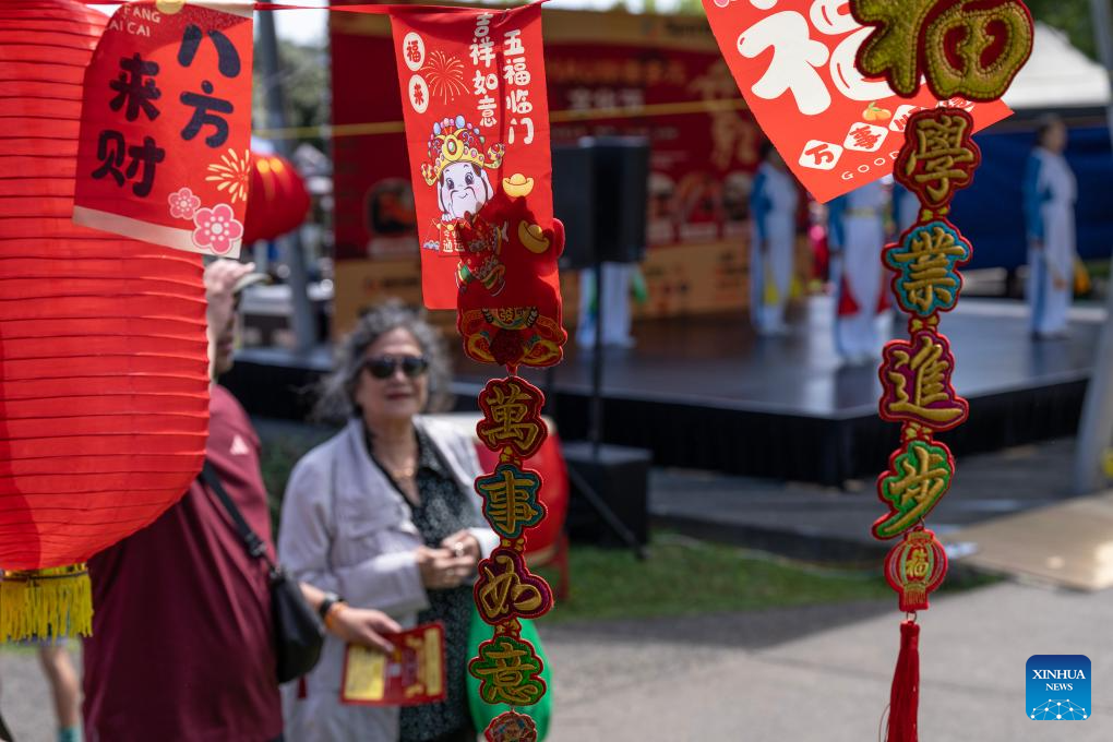 Visitors are pictured at an event celebrating the Spring Festival in Christchurch, New Zealand, Feb. 21, 2026. A series of events celebrating the Spring Festival is held here from Feb. 20 to 22. (Photo by Chen Siyumeng/Xinhua)