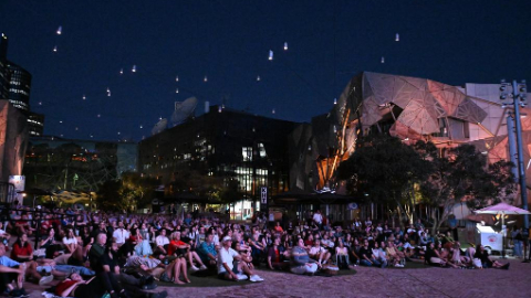 Audiences watch classic Chinese silent movie at Federation Square in Melbourne