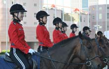 Snapshots of horseback policewomen at Summer Davos