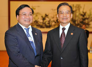 Chinese Premier Wen Jiabao meets foreign guests at Davos